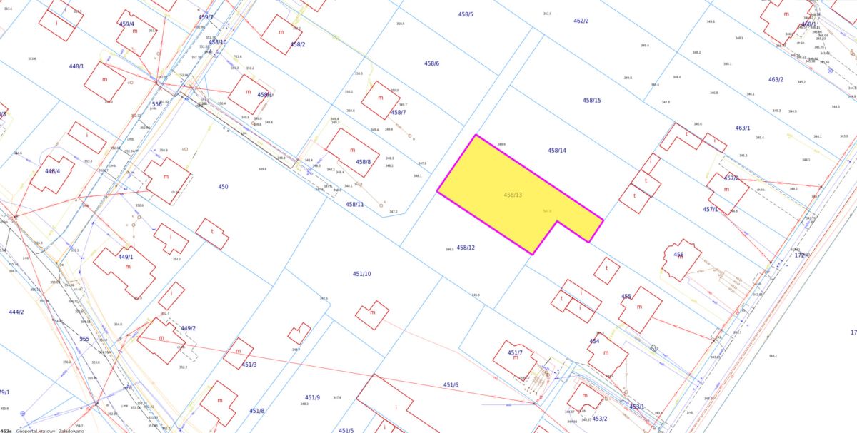 https://rastry.gison.pl/mpzp-public/klucze/uchwaly/U_2023_529_XC.pdf - Kształt i wymiary: Działka o numerze 458/13 ma powierzchnię 1035 m² i jest zbliżona kształtem do prostokąta, co ułatwia zagospodarowanie terenu.
